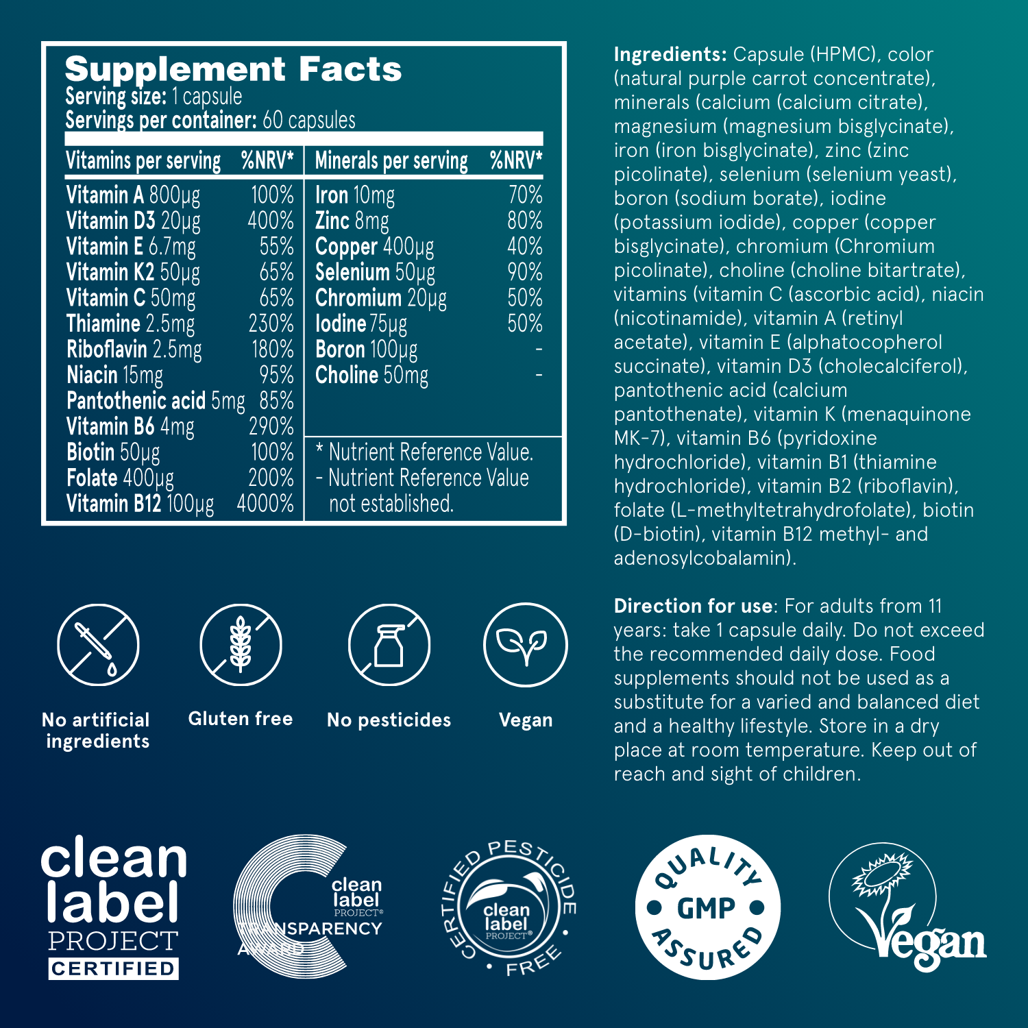 The product is developed as a supplement to a regular diet as well as a plant-based diet, for those who do not want to have to compromise on the quality, dose or forms of various vitamins and minerals.
